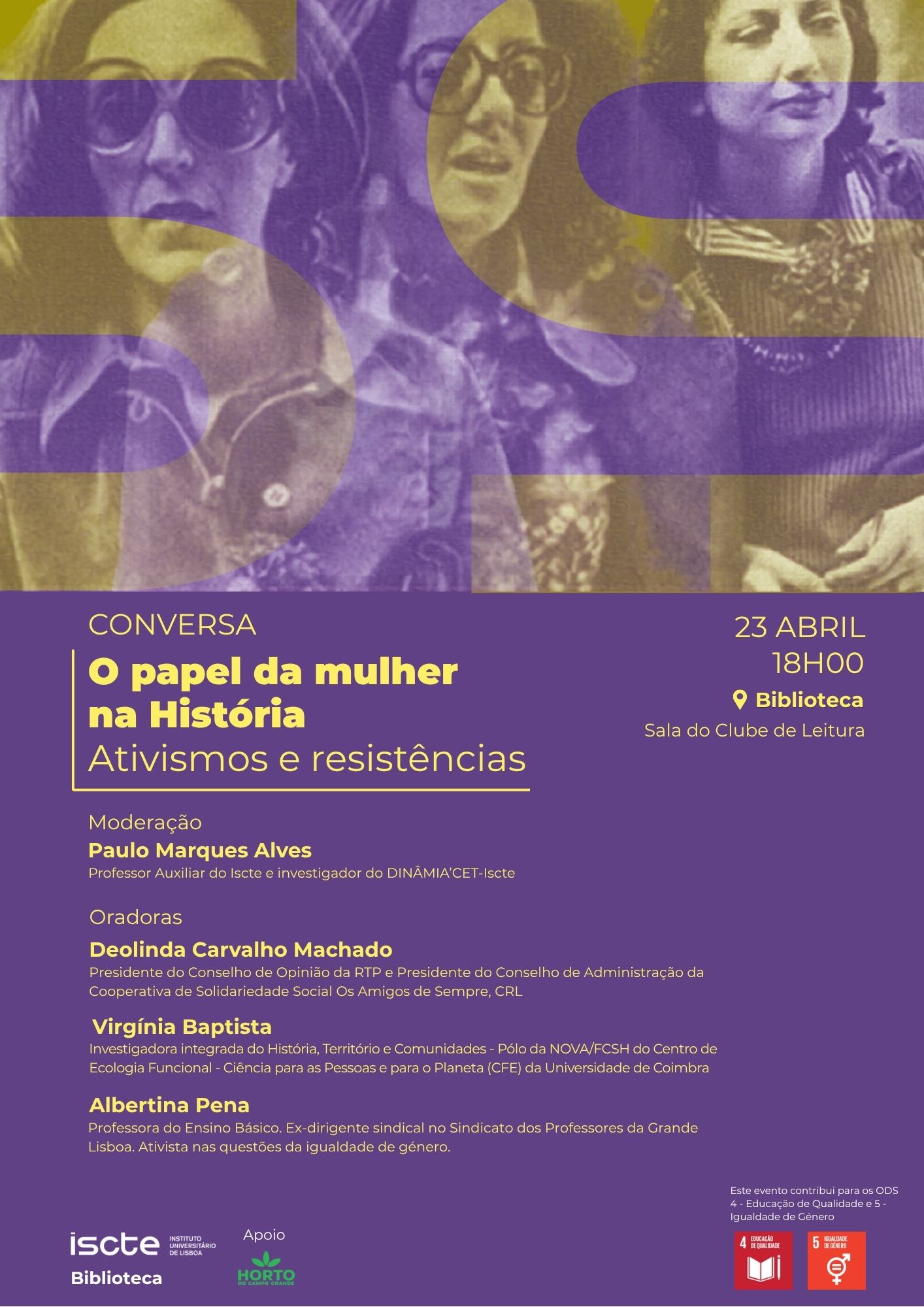 Nos 52 anos da ´madrugada esperada, o dia inicial inteiro e limpo' (no dizer de Sophia de Mello Breyner) podem ser visitadas - na Biblioteca do Iscte - duas exposições. Uma, bibliográfica, apresenta 40 obras disponíveis sobre “Representação e Participação Política das Mulheres”. A outra é a exposição itinerante do Museu do Aljube em torno do tema "Mulheres e Resistência - Novas Cartas Portuguesas e outras lutas", que revela o papel de tantas mulheres nas lutas por direitos e justiça, desde os anos 30 do século passado até ao 25/4/74.
