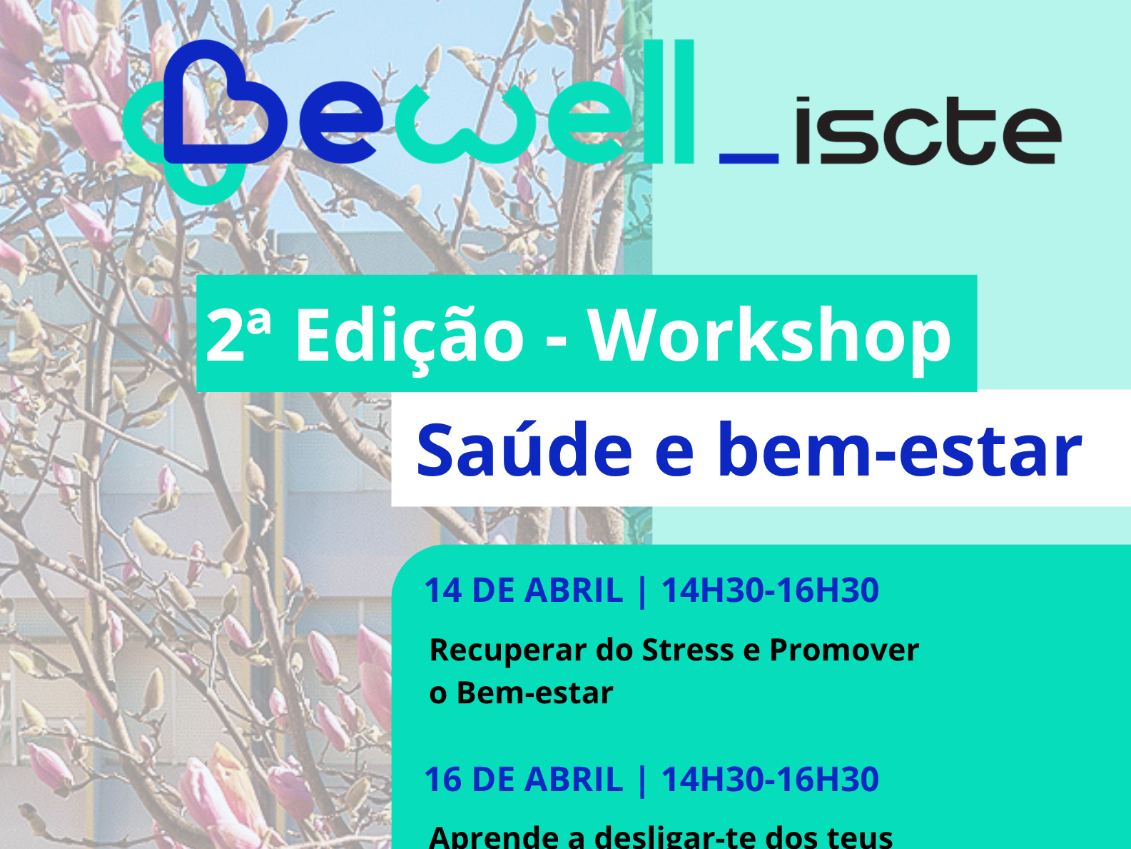 O projeto BeWell-Iscte, uma iniciativa de colaboração entre o CIS-Iscte e o CIES-Iscte, com o apoio do SocioDigital Lab for Public Policy e da DGES, lança uma nova edição do seu Workshop sobre Saúde e Bem-estar. A decorrer em abril de 2026, ao longo de quatro sessões, o workshop destina-se a estudantes do Iscte.