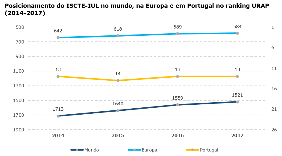 No University Ranking by Academic Performance (URAP), em 2020, o Iscte posicionou-se na 1450ª posição a nível mundial (no total de 3000 universidades) e 13ª a nível nacional (no total de 21 universidades).