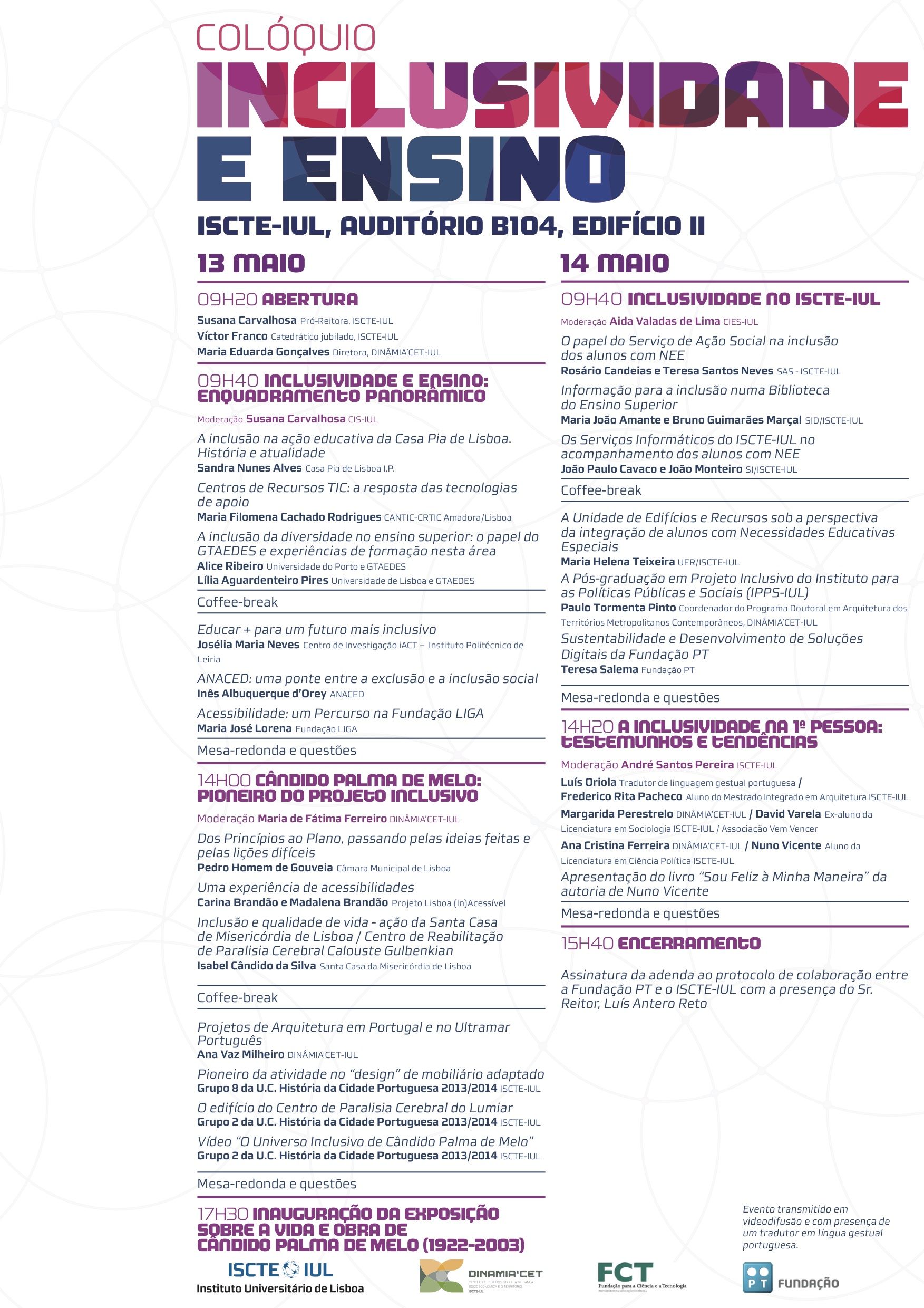 O colóquio é uma iniciativa conjunta do ISCTE-IUl, do Dinâmia’CET e da FCT e será transmitido em videodifusão com o apoio da FCCN.
