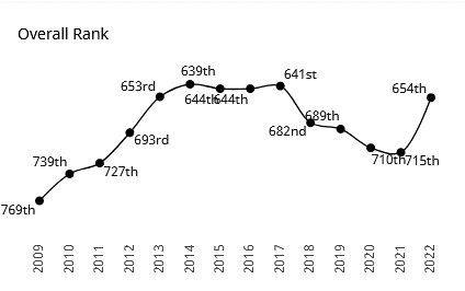 In 2022, Iscte was ranked 491th in the universisties ranking. This year 4364 universities were ranked on a national level, Iscte was ranked 12th among Portuguese higher education institutions.