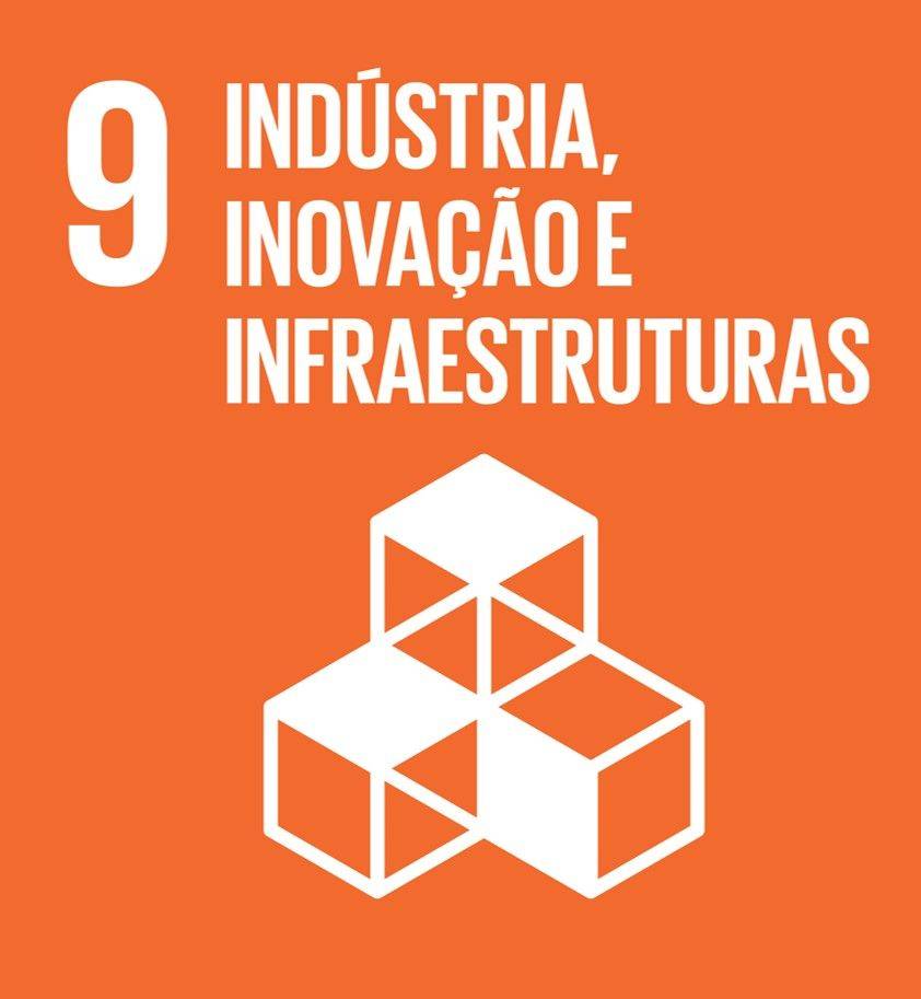 ODS 9 - Construir infraestruturas resilientes, promover a industrialização inclusiva e sustentável e fomentar a inovação, cor Laranja.