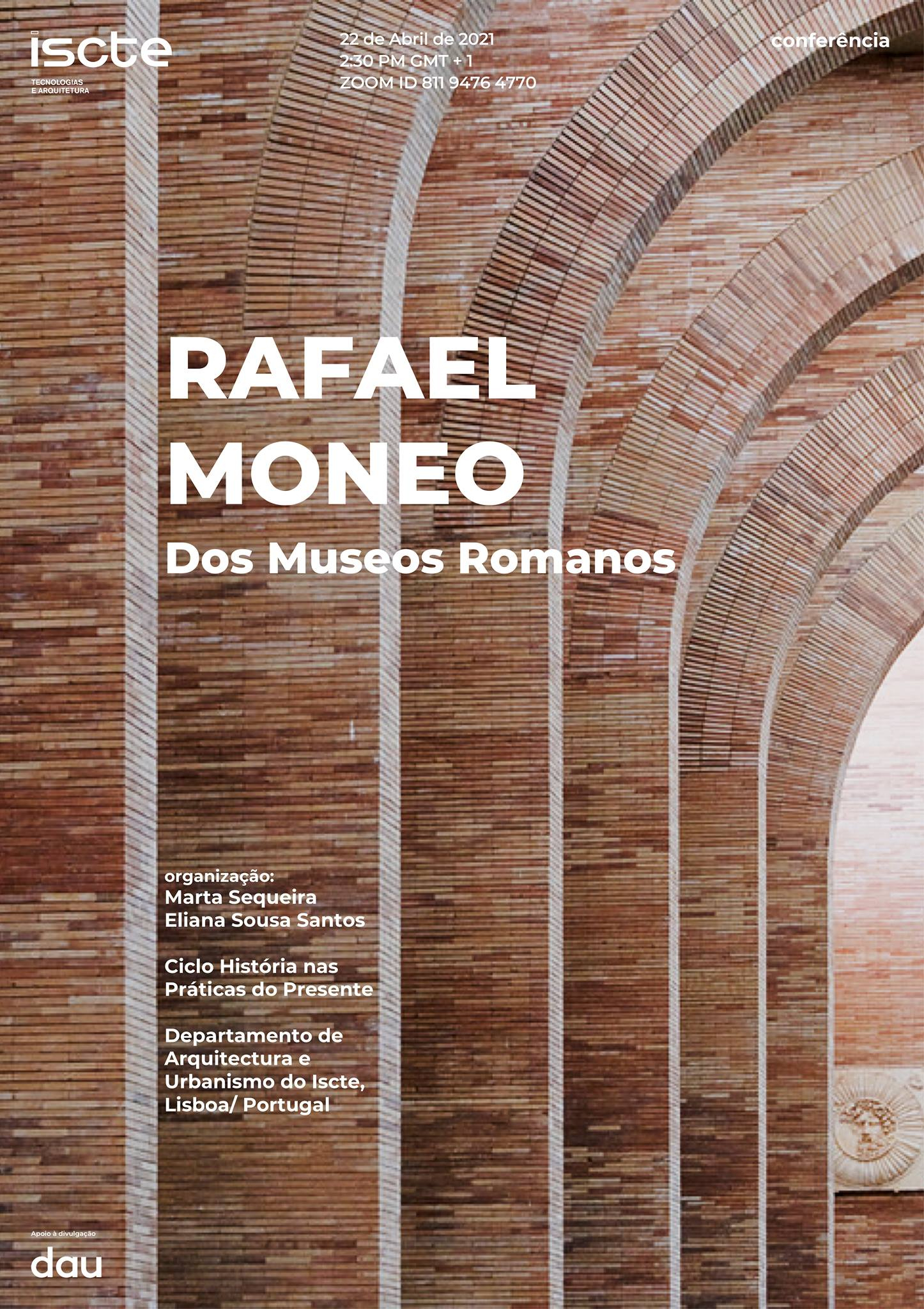A próxima sessão será já no dia 22.04.2021, às 14:30, e conta com a presença de Rafael Moneo - premiado com o Prémio Pritzker, o mais importante prémio internacional de Arquitectura - que dará uma conferência intitulada Dos Museos Romanos.