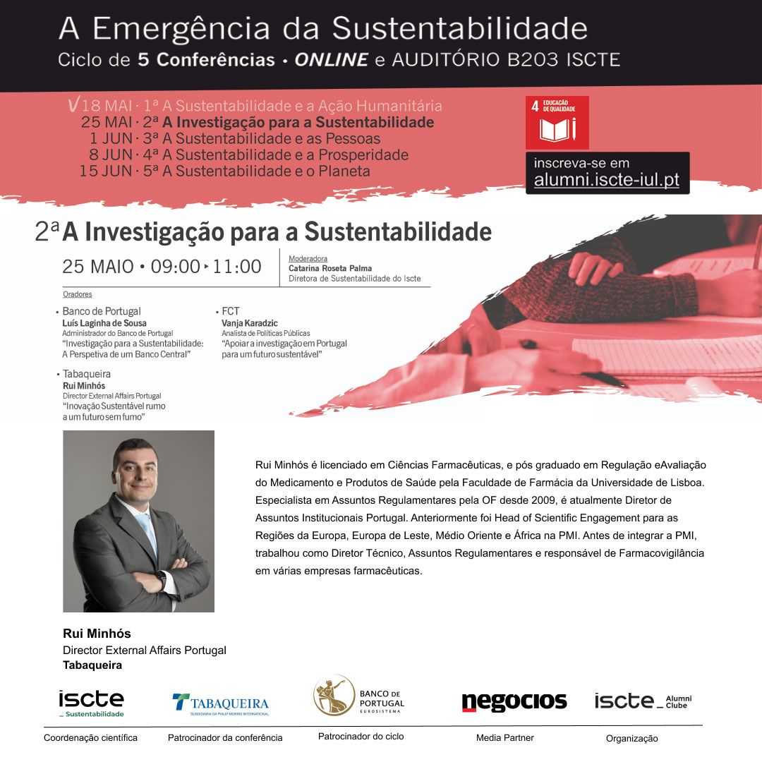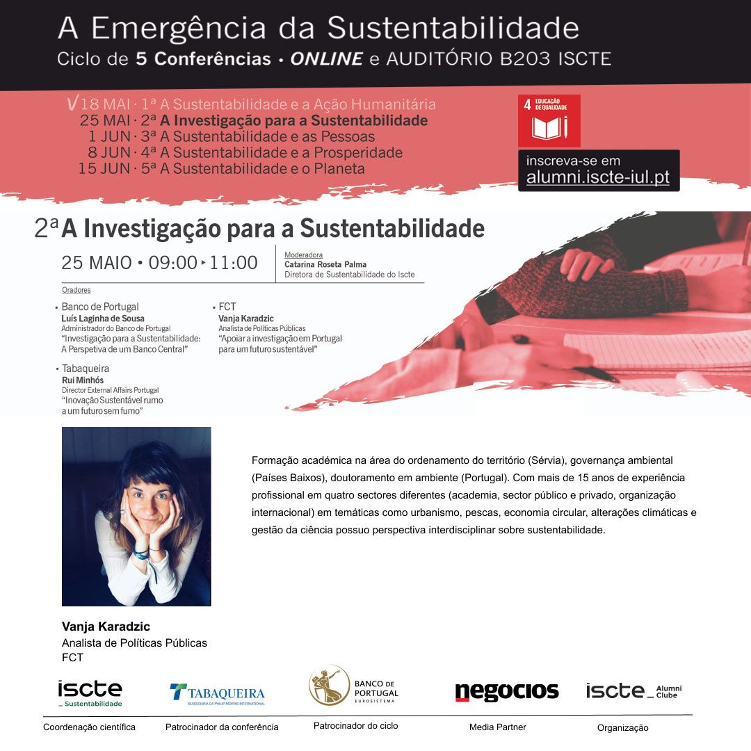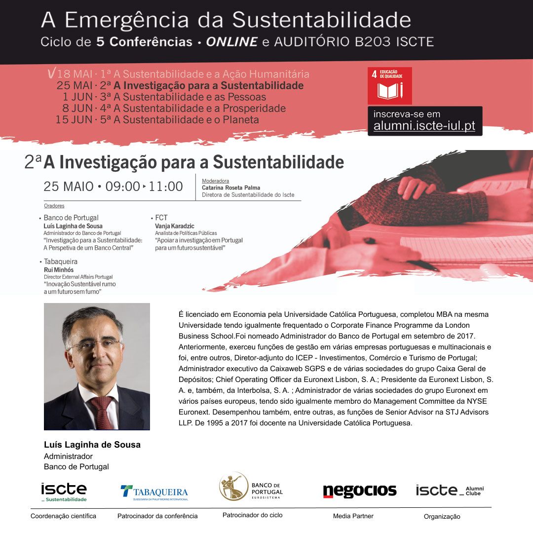 No próximo dia 25 de maio, a partir das 9:00, acontece a segunda conferência que irá debater o tema da Investigação para a Sustentabilidade (cartaz).
