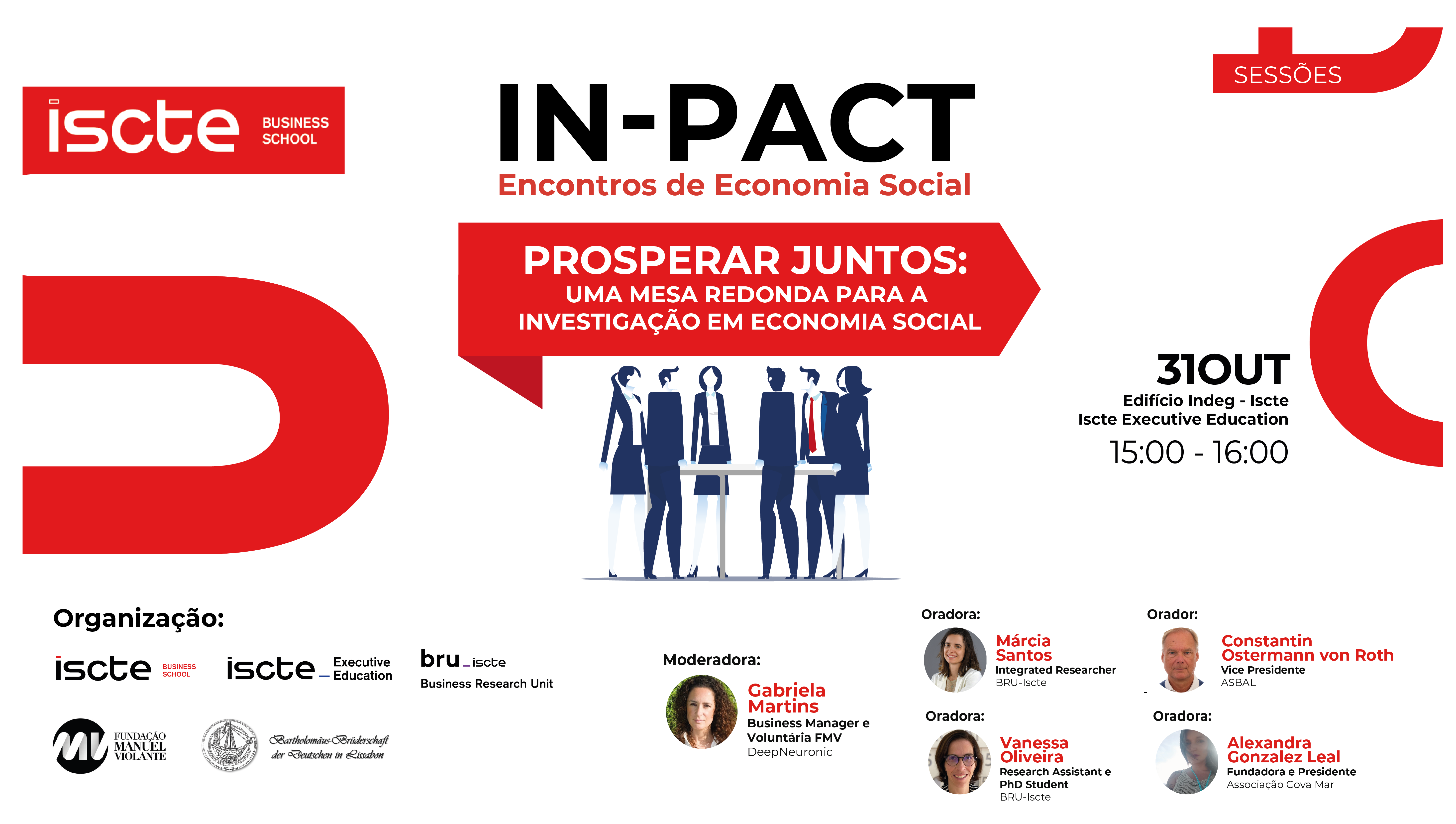 O 1º evento deste Ciclo, é uma Mesa-Redonda, com o nome "Prosperar Juntos: Uma Mesa-Redonda para a Investigação em Economia Social", que vai acontecer no dia 31 de Outubro, no Edifício do ISCTE Executive Education.