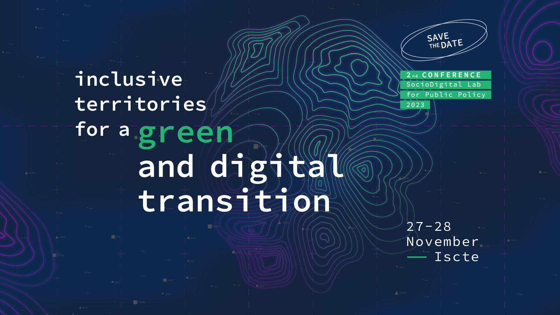 A 2ª Conferência do SocioDigital Lab for Public Policy decorre a 27 e 28 de novembro no Auditório do novo edifício Iscte Conhecimento e Inovação (CVTT), com o título “Territórios Inclusivos na Transição Verde e Digital”.