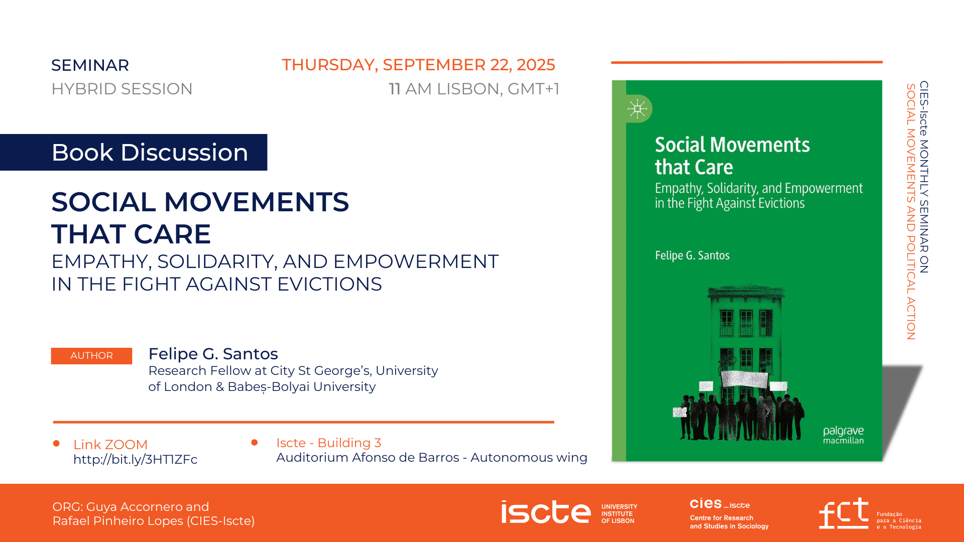 Integrado no Ciclo Mensal de Seminários Movimentos Sociais e Ação Política, o seminário "Social Movements That Care", decorre no dia 22 de setembro 2025, em formato hibrido.