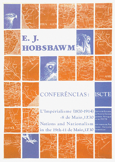 CARTAZ da conferência organizada pelo Iscte que trouxe a Lisboa o historiador E. J. Hobsbawm.