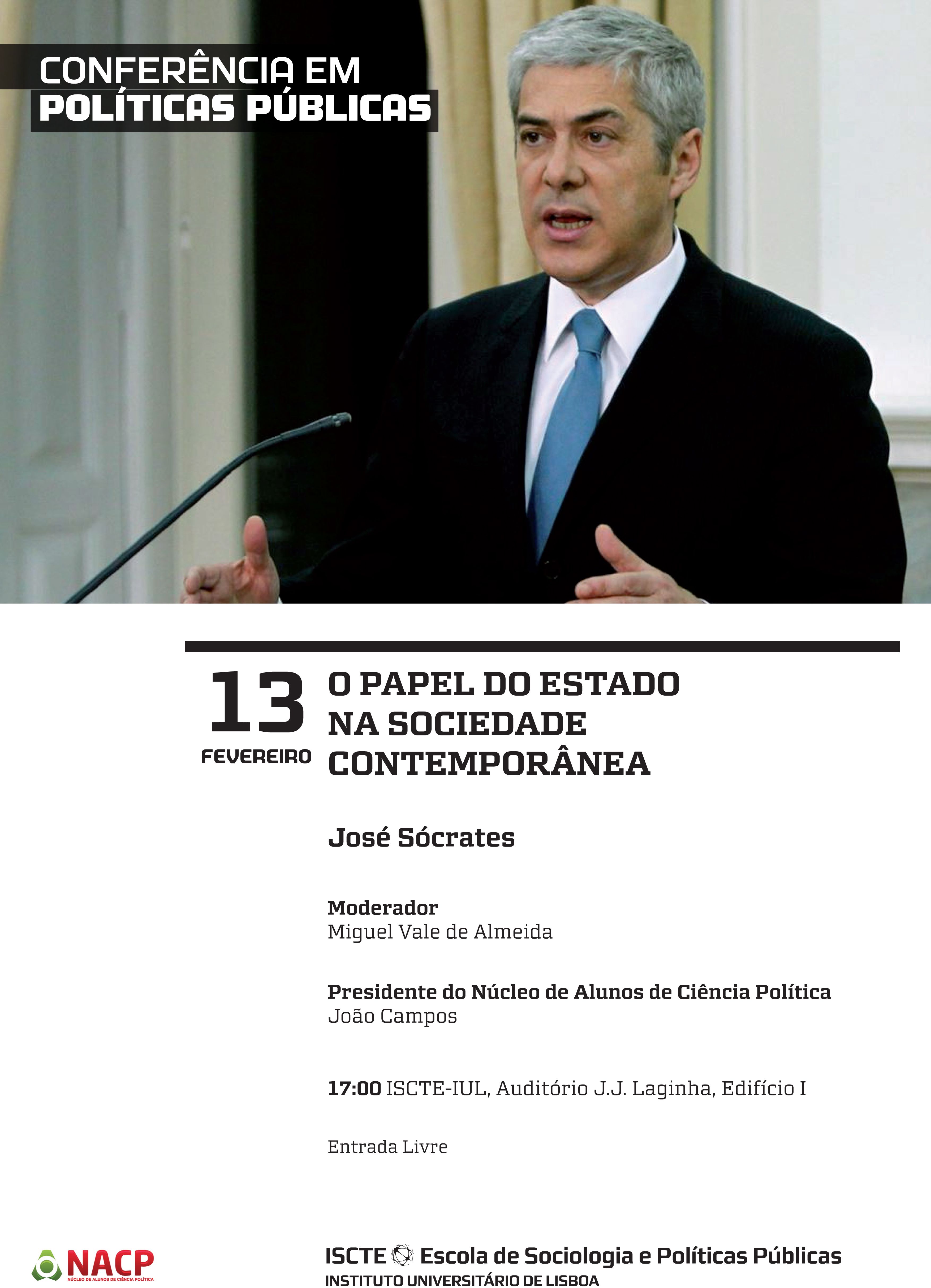 O ex-Primeiro Ministro José Sócrates estará no ISCTE-IUL no próximo dia 13 de Fevereiro para falar sobre "O Papel do Estado na sociedade contemporânea".