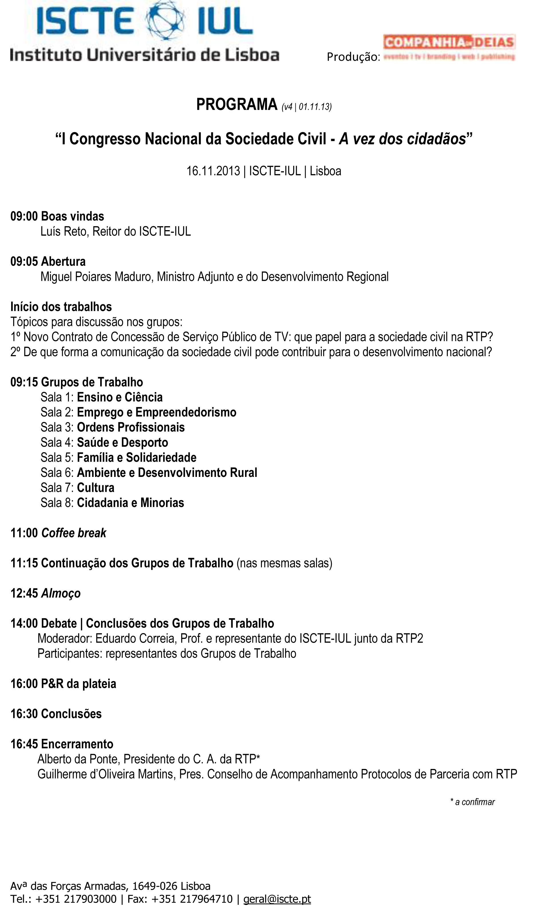 Realiza-se pela primeira vez a 16 de Novembro o I Congresso Nacional da Sociedade Civil, um evento que irá debater e apresentar conclusões públicas sobre dois grandes temas, o novo contrato de concessão de serviço público de TV e o papel que a comunicação da sociedade civil pode ter para o desenvolvimento nacional.